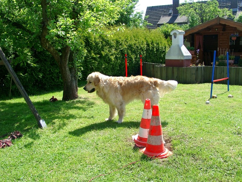 Leider ist die Beauty nicht mehr da, aber wir suchen immer noch fleißig nach den Mäusen im Garten. Herrchen versucht, die ganzen schönen Löcher zu verschließen.